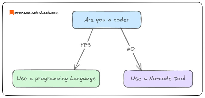 If No, you are not a coder → You don’t need to learn a programming language just to build an AI agent. Learning to code takes time and effort, and it’s not necessary if your goal is simply to get up and running quickly. No-code and low-code tools today are powerful enough to let you drag, drop, and launch functional agents without writing a single line of code. Therefore, you will likely be using a no-code tool, such as n8n or Zapier.