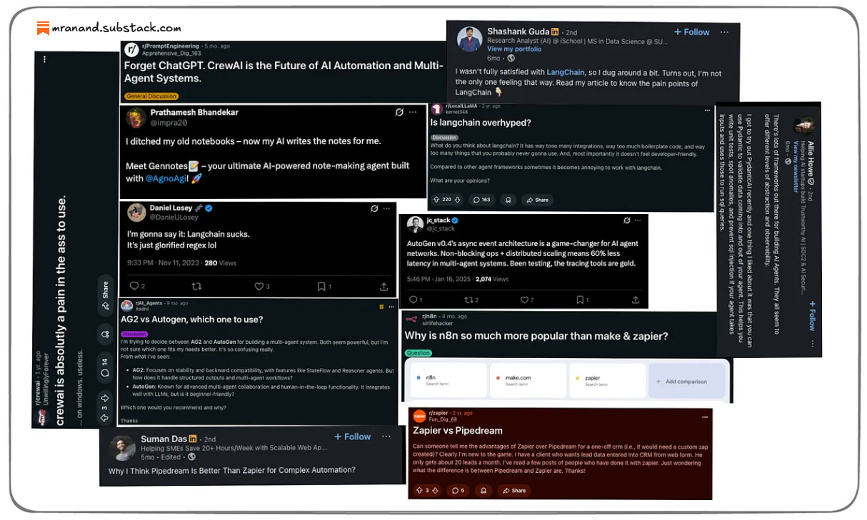 Tools to explore: n8n or coding frameworks like Google ADK and CrewAI with content plugins