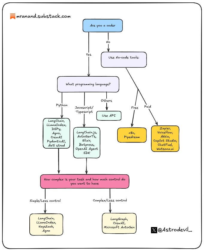 If yes, you are a coder → Since you already know how to code, your world looks different. You’ll want to explore frameworks and libraries that give you complete control, flexibility, and the ability to customize your agents deeply. At this point, the real decision is: Which framework should I pick?